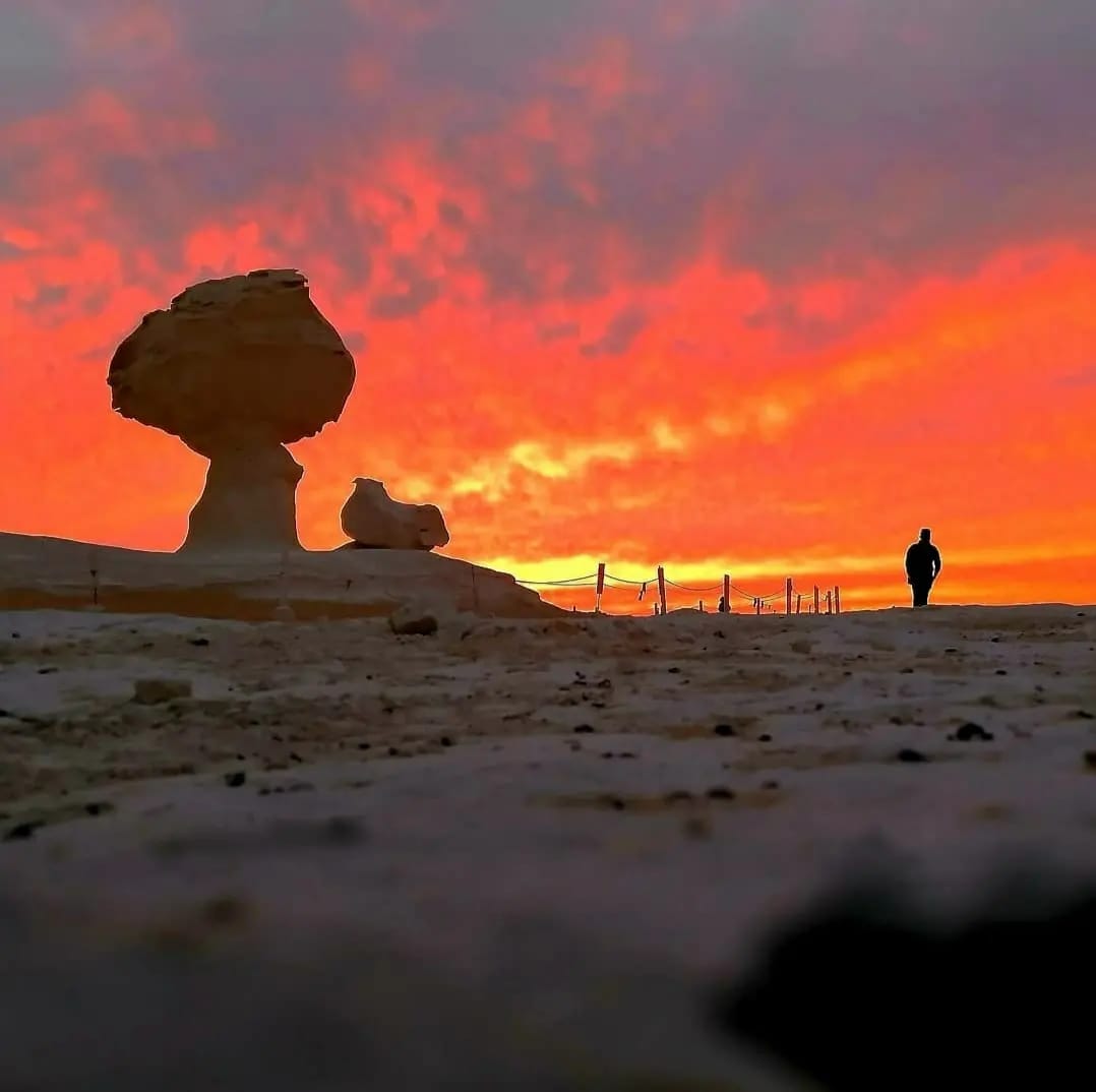 Pick up time At 07:00 from your hotel in Giza or in Cairo, drive to Bahariya Oasis , about 350 km east. This journey takes about 4 hours, there will be stops during the trip for WC and Coffee, You will take your 4x4 Jeep and drive to the black desert , The Lunch will be served here in El Haize oasis, Later on, day one, explore the white desert National Park, the most well-known desert destination in Egypt. Then drive to valley of Agabat , Valley of Agabat is deep within the white desert . You have to be there to feel the out-worldly beauty of the place. Millions of years ago, the place used to be under the sea. Over the years, unique rock formations of limestone, chalk (and maybe sand) developed. As the sky turns pink then deepest fiery orange, the rock-shapes fade, and silence are all around. Sitting around a small fire and enjoying the simplest meal of chicken, rice, and vegetables, you will feel like nothing has ever tasted so good. Bedouin staff will arrange dinner and desert camping.
